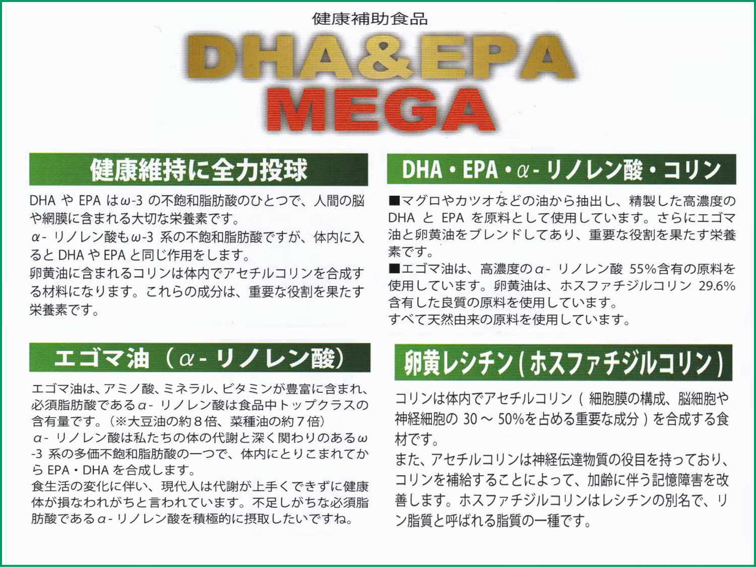 高濃度DHA & EPA をぎゅっと凝縮 DHA&EPA MEGA 100粒 脳の働き 健康維持 えごま油 α-リノレン酸 リノレン酸 卵黄レシチン ホスファチジルコリン